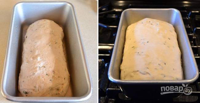 4. Выложите тесто в форму, смазанную маслом. Дайте еще подойти (минут 20-30). После отправьте в разогретую до 190 градусов духовку и запекайте 50-65 минут до румяности.