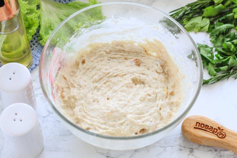 Всыпьте оставшуюся муку и вмешайте ее в тесто, оно должно получиться вязким.