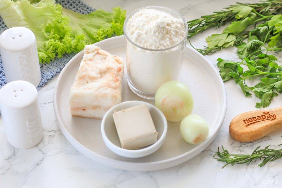 Подготовьте указанные ингредиенты. Шпик можно использовать свежий, копченый, соленый — по вашему вкусу.