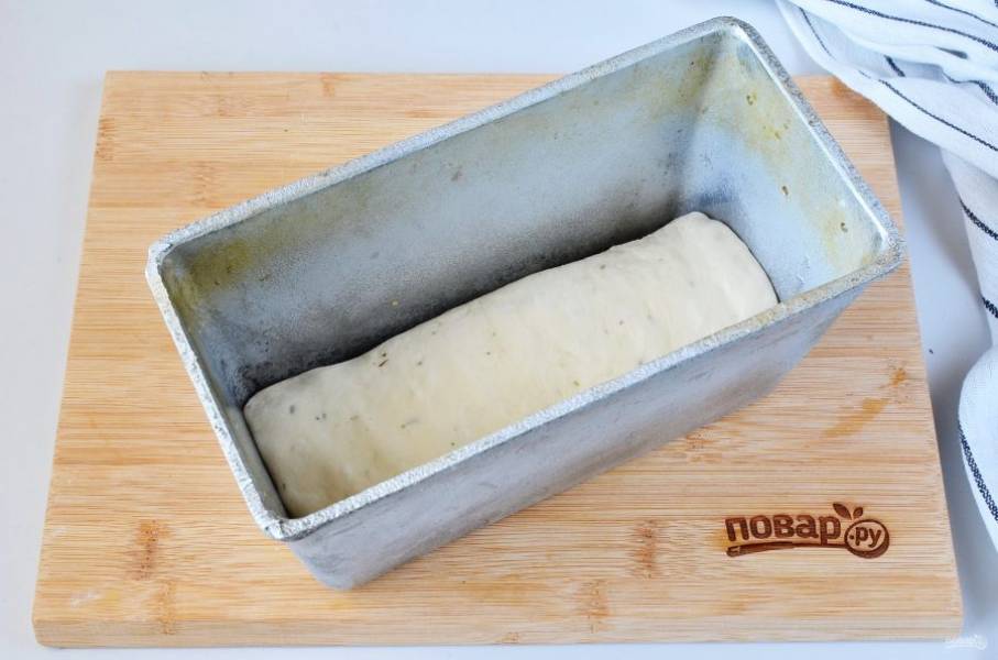 Смажьте форму растительным маслом. Поместите хлеб и накройте пленкой, уберите в тепло на 30 минут для расстойки.