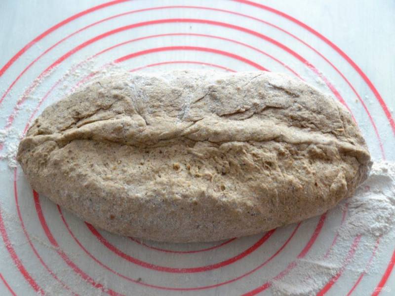 Присыпьте рабочую поверхность стола мукой, выложите тесто, сформуйте хлеб любой формы: круглой, овальной, как вам нравится.