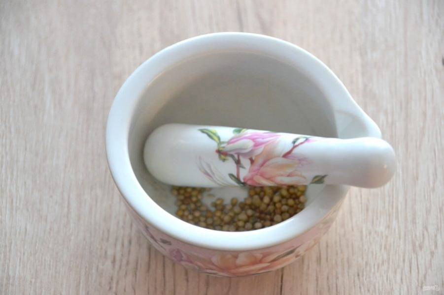 Всыпьте в опару сухой квас, соль, кориандр, размешайте.