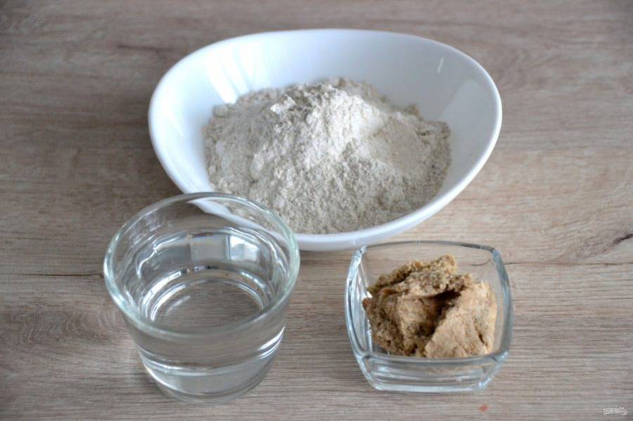 Для приготовления опары возьмите 100 мл. теплой кипяченой воды, 30 грамм ржаной закваски (стартера), 100 грамм ржаной муки.