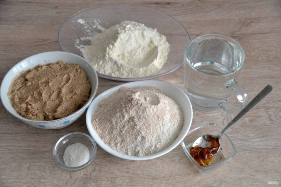 - Мука ржаная цельнозерновая 325 грамм 100 грамм — в опару, 225 грамм — в тесто