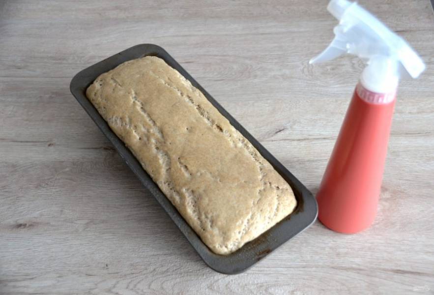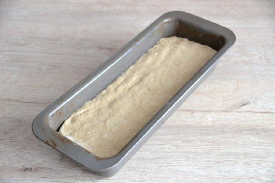 Выложите заготовку хлеба в формочку для выпечки, которую можно слегка смазать растительным маслом. Накройте салфеткой, оставьте в теплом месте для расстойки на 1 час.