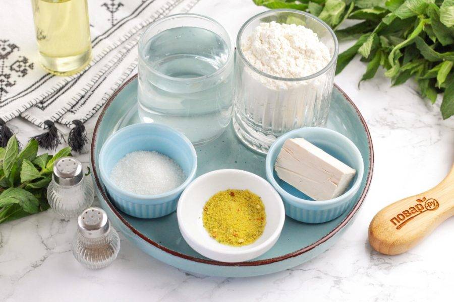 Подготовьте указанные ингредиенты. Живые дрожжи можно заменить сухими в расчете 5-6 граммов. Теплую воду можно заменить молоком любой жирности.