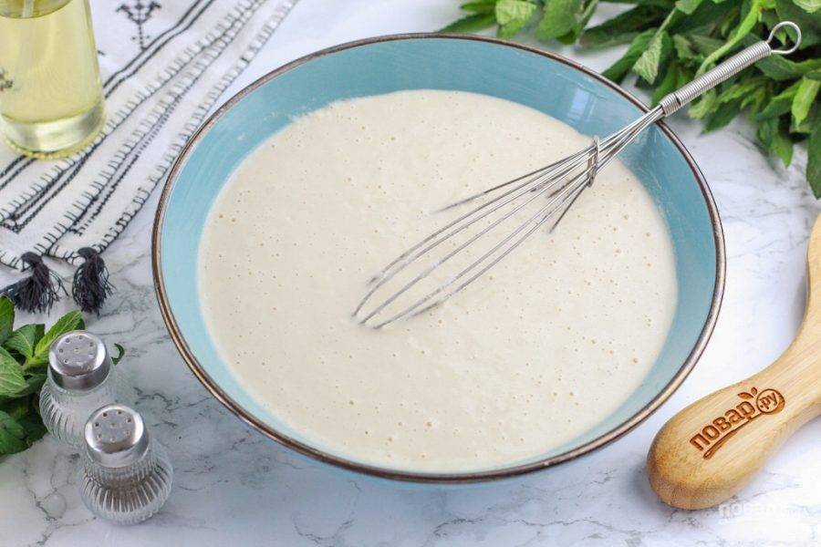 Чтобы мука отлично вмешалась в жидкость, лучше всего воспользоваться венчиком.