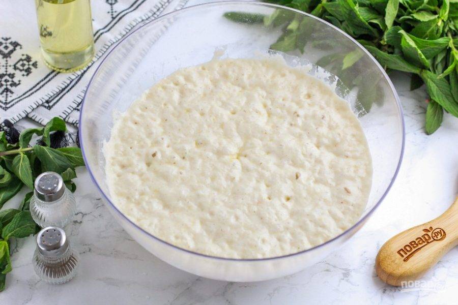 Перелейте опару в высокую миску и накройте полотенцем. Оставьте в тепле на 15-20 минут. Следите за ней, так как дрожжи дают интенсивный рост.