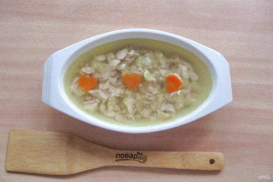 Варите холодец еще час до мягкости курицы. В конце добавьте куркуму. Если вы не любите эту специю, то можно не добавлять. Но бульон из постной курицы получается очень бледным, а куркума сделает его приятного желтого цвета.