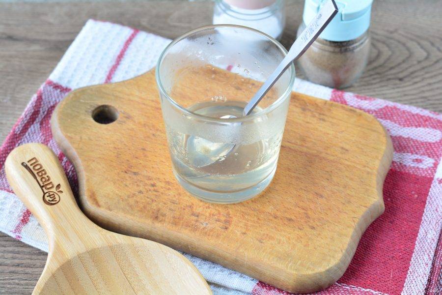 Желатин залейте холодной водой (небольшим количеством, примерно 100 грамм), чтобы он набух.