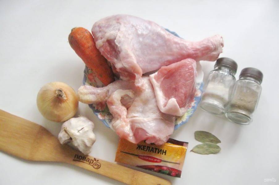 Подготовьте ингредиенты для приготовления холодца.