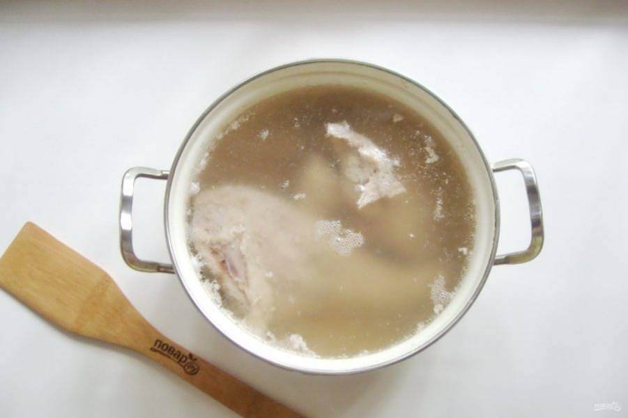 Доведите до кипения, огонь убавьте и снимите пену.