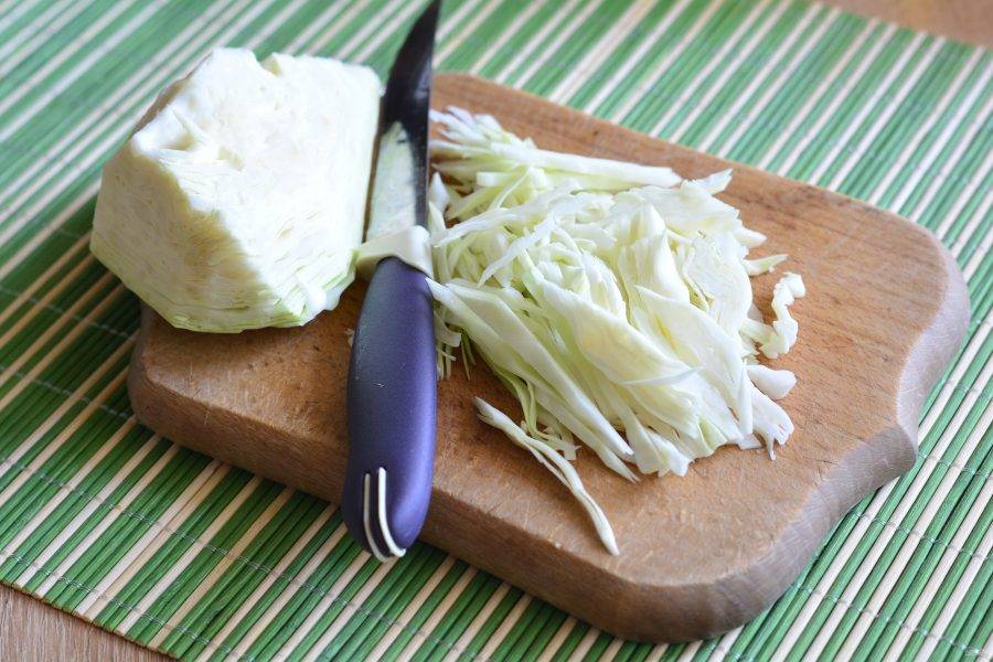 Белокочанную капусту нашинкуйте тонкой соломкой.