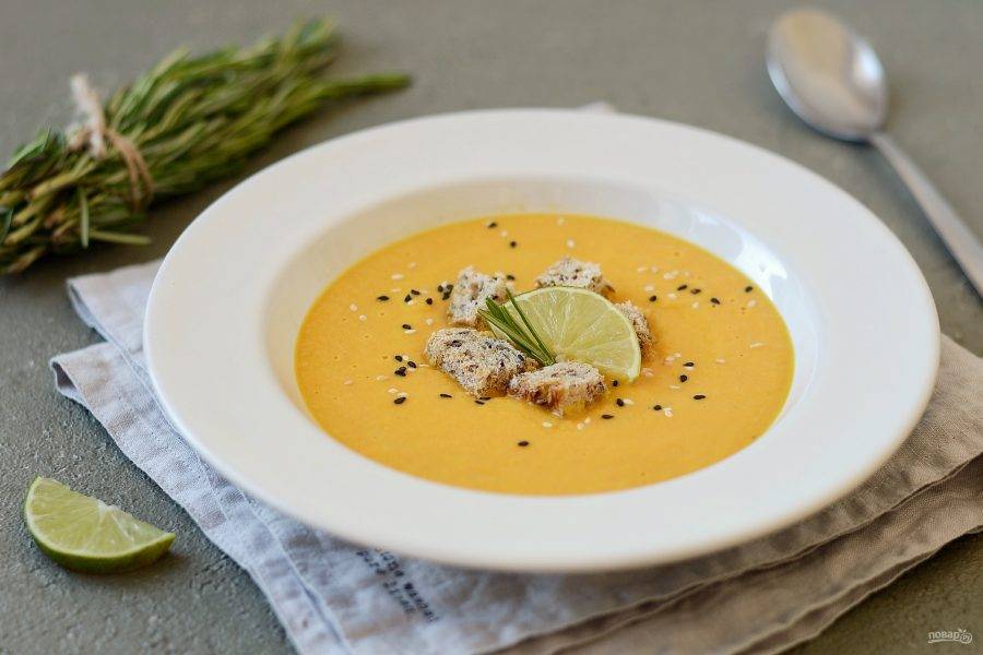 Морковный суп-пюре с имбирем и карри — идеальное блюдо в холодные деньки: яркое, пряное и приятно согревающее. Подавайте такой суп с чесночными гренками, и вы не сможете от него оторваться. Приятного!
