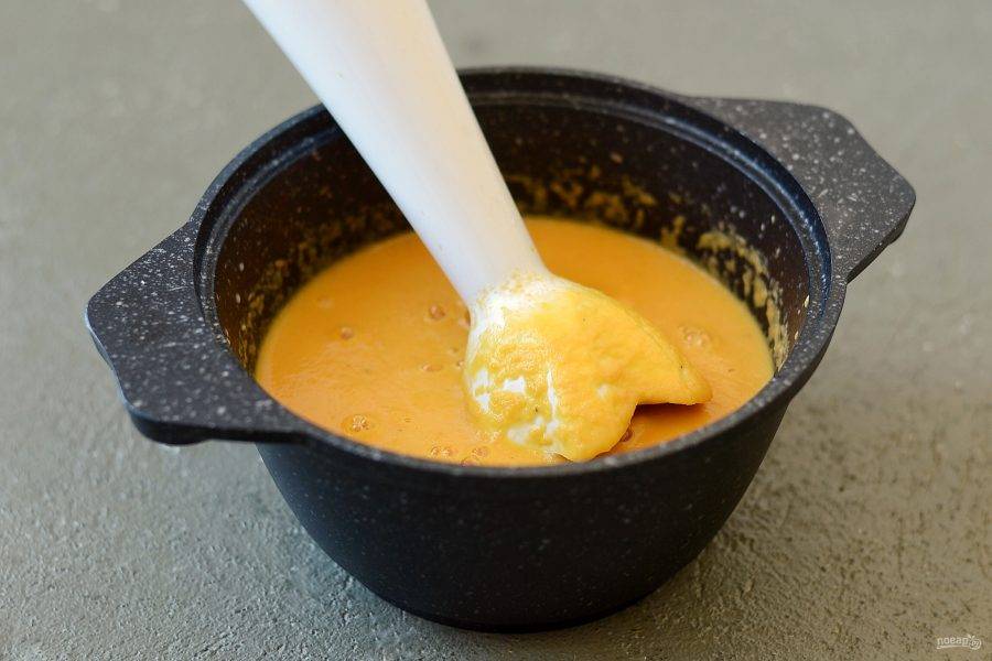 Рецепт приготовления суп-пюре с морковью, свежим тимьяном, медом и жирными сливками.