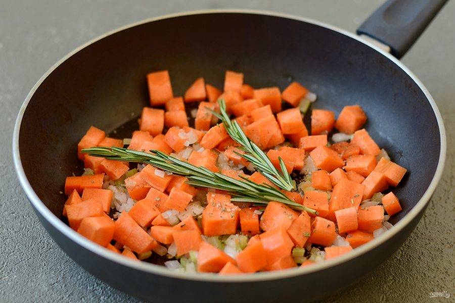 Морковь очистите, помойте, нарежьте ломтиками. Переложите морковь в сковороду. Приправьте травами, тушите минут 15, постоянно помешивая, до мягкости.