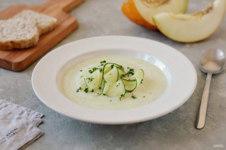 Холодный суп из огурца и дыни готов, приятного аппетита!