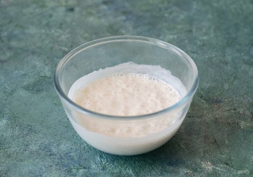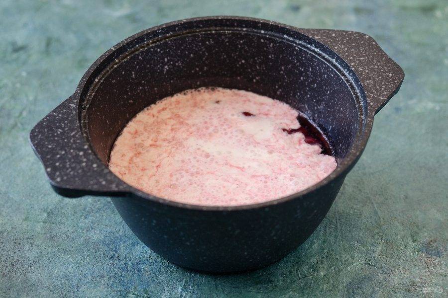Влейте в горячую основу получившуюся смесь. Перемешайте и оставьте охлаждаться пару часов в холодильнике.