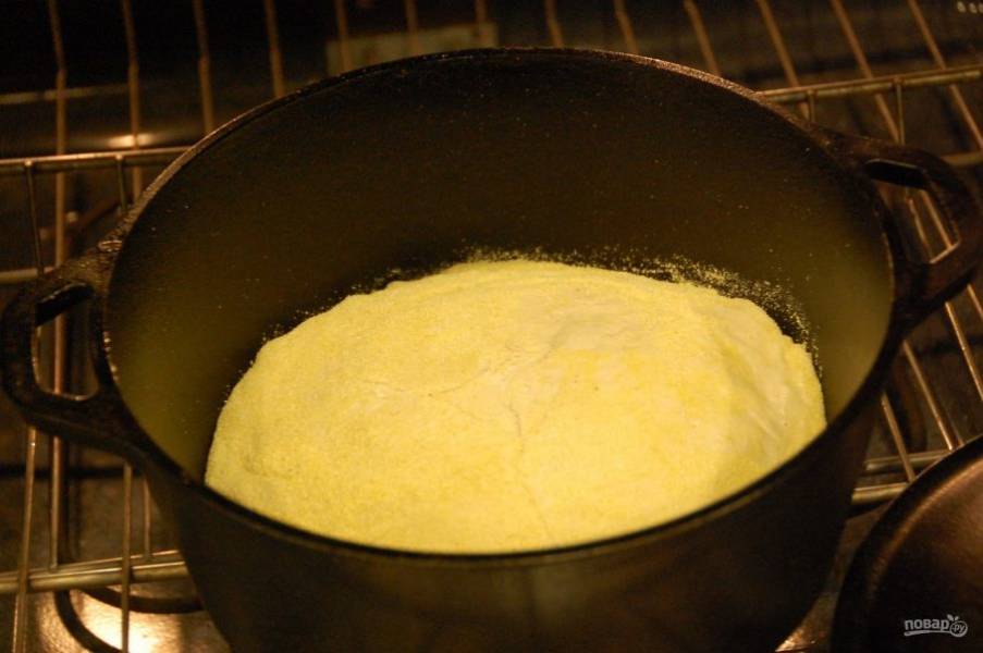 5. Разогрейте духовку до 240 градусов и поместите в нее кастрюлю, в которой будете выпекать, чтобы она нагрелась.