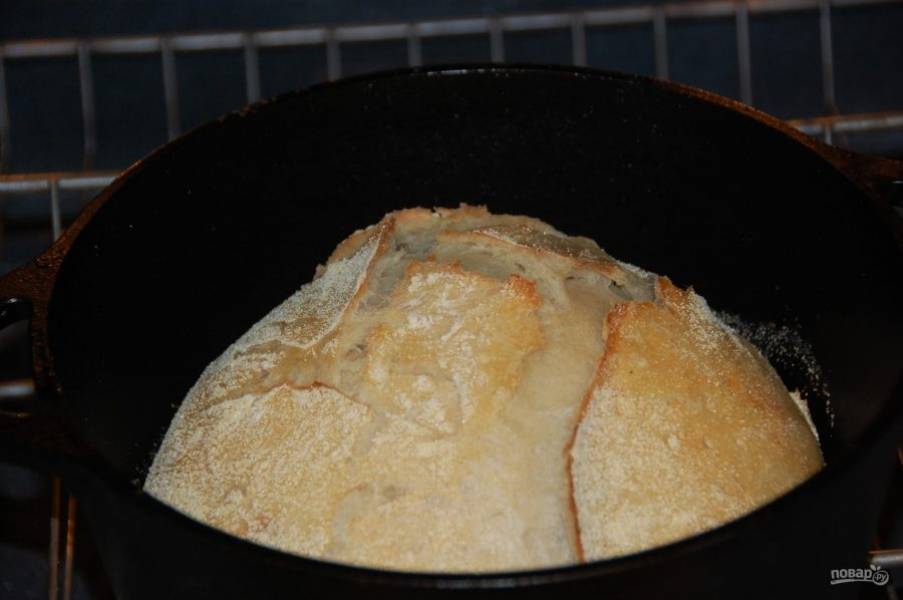 6. Выложите тесто в горячую кастрюлю, благодаря этому получится хрустящая корочка. Запекайте тесто около 30 минут под закрытой крышкой.
