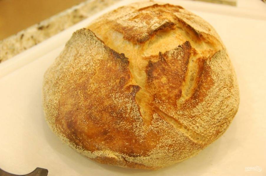 8. Достаньте готовый хлеб из духовки и из формы, переложите на столешницу и дайте ему постоять 15 минут.