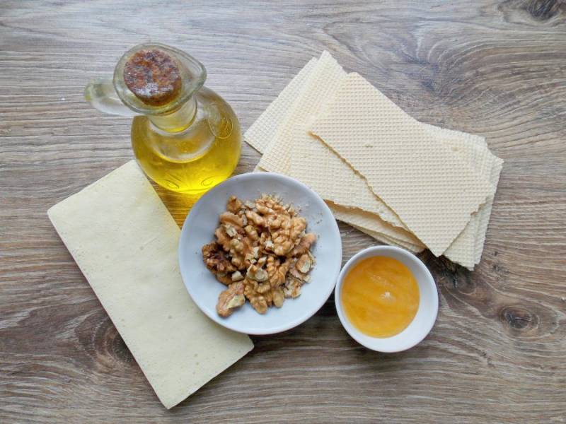 Подготовьте все необходимые ингредиенты для приготовления хрустящего слоя в вашем торте.