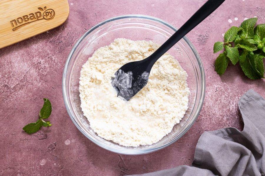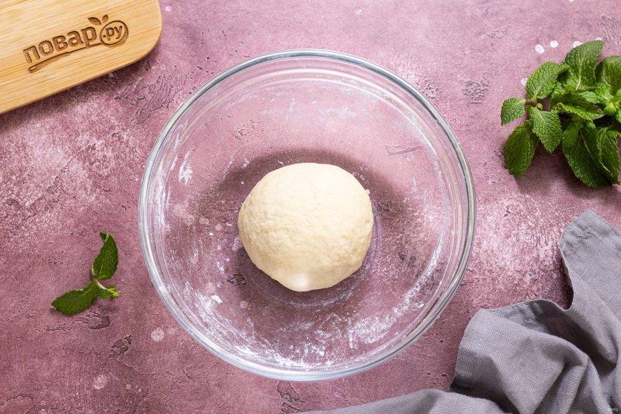 Скатайте тесто в шар, затем вымешивайте минут 5. Заверните тесто в пленку, оставьте на 20-25 минут при комнатной температуре.