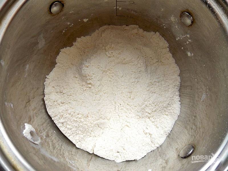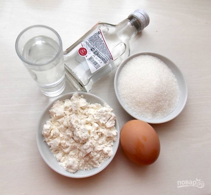 Добавьте яйцо, воду и водку. Замесите тесто по консистенции, как кефир.