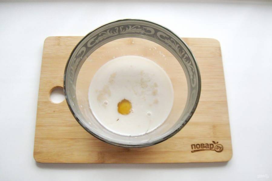 Добавьте яйцо, соль и 3 столовые ложки рафинированного подсолнечного масла.