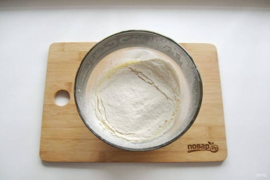 Постепенно добавьте просеянную муку.