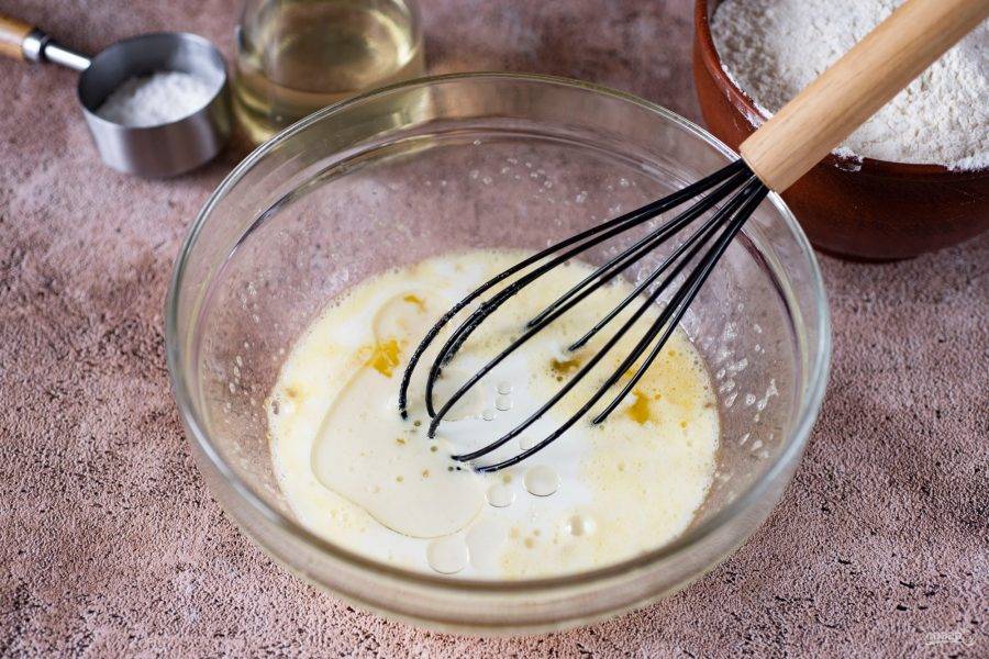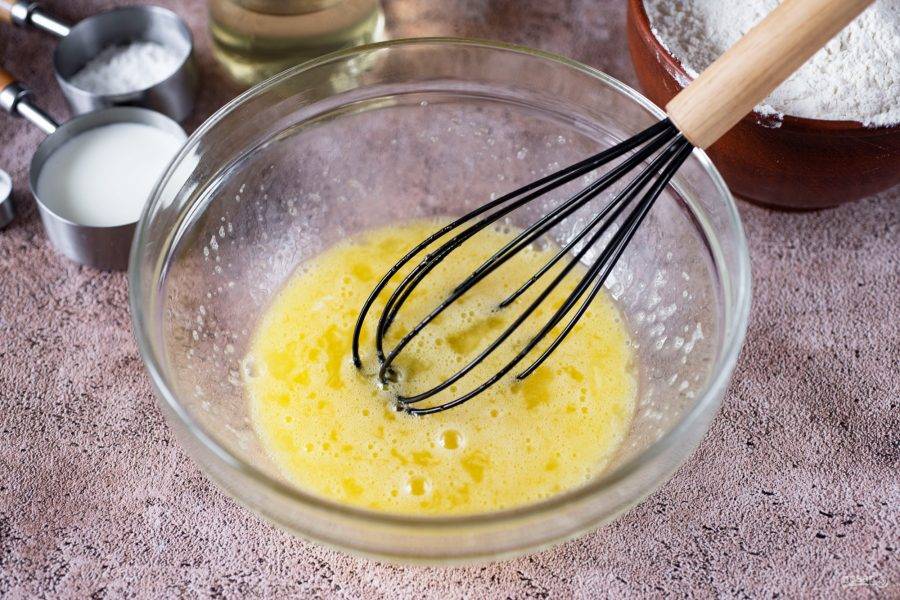 Активно венчиком перемешайте эти ингредиенты до получения однородной смеси.