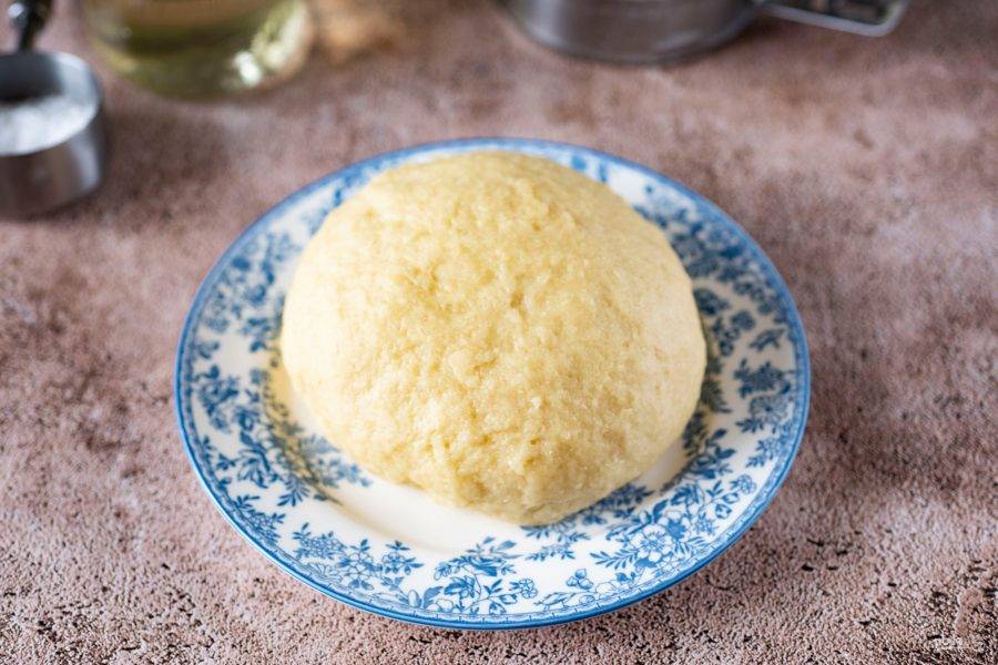 Замесите мягкое, не прилипающее к рукам тесто. Муки может потребоваться чуть больше, поэтому самостоятельно добавляйте понемногу, чтобы получилась необходимая консистенция теста.