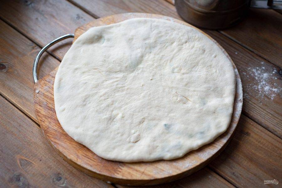 Раскатайте тесто с начинкой в тонкую лепешку.