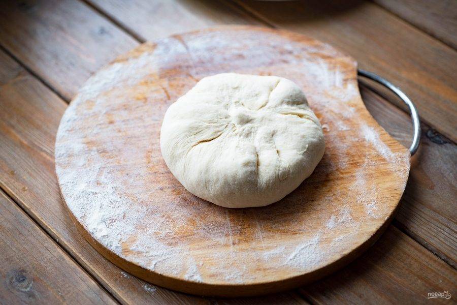 Замесите мягкое, не прилипающее к пальцам тесто. Разделите его на несколько равных частей. Я разделила тесто на 4 равные части.