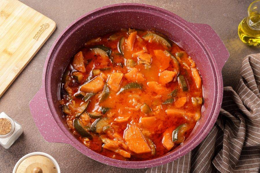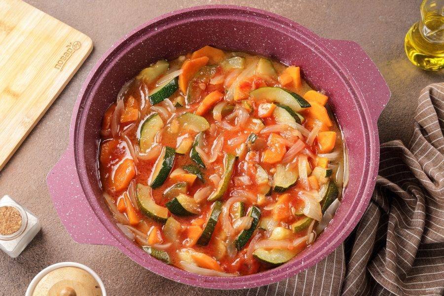 Перемешайте и тушите при слабом кипении ещё 30 минут.