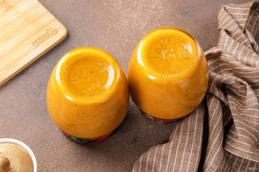Закрутите стерильными крышками, переверните вверх дном, укутайте и оставьте до остывания.