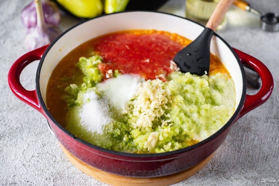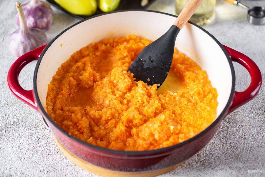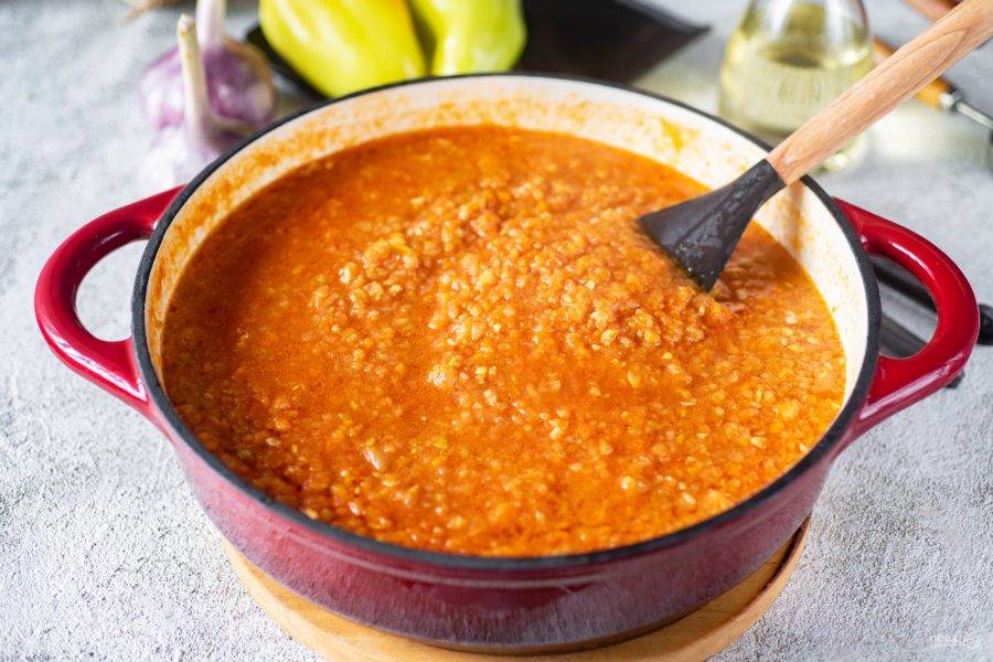 Тушите один час на маленьком огне под закрытой крышкой, регулярно помешивая овощную массу.