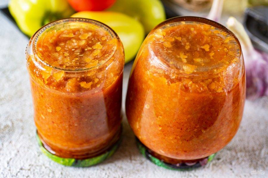 Герметично укупорьте банки крышками, переверните вверх дном, укутайте толстым одеялом и оставьте в таком положении баночки на ночь.