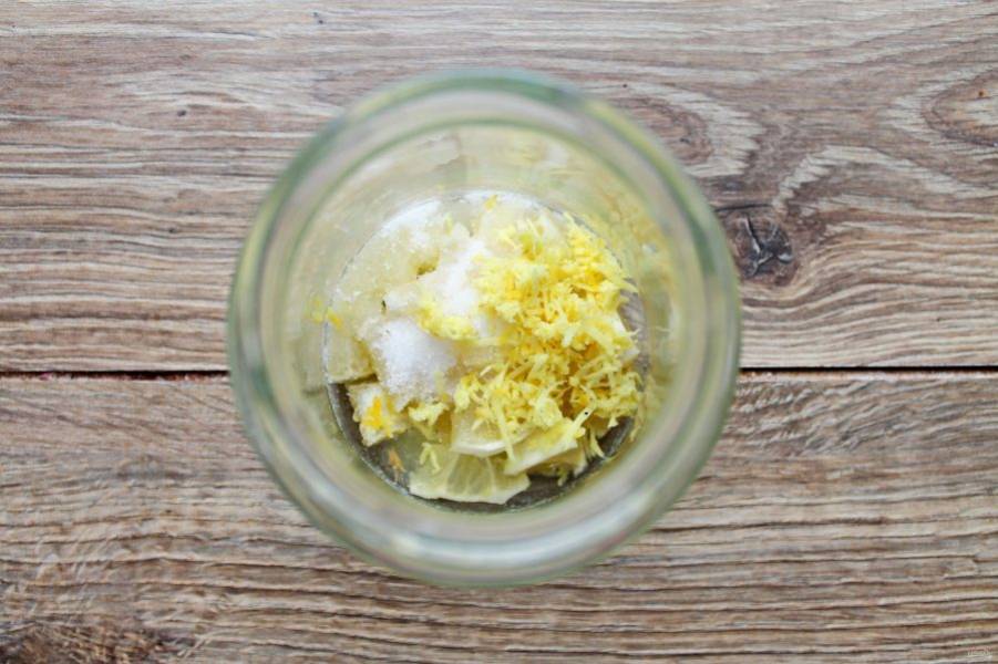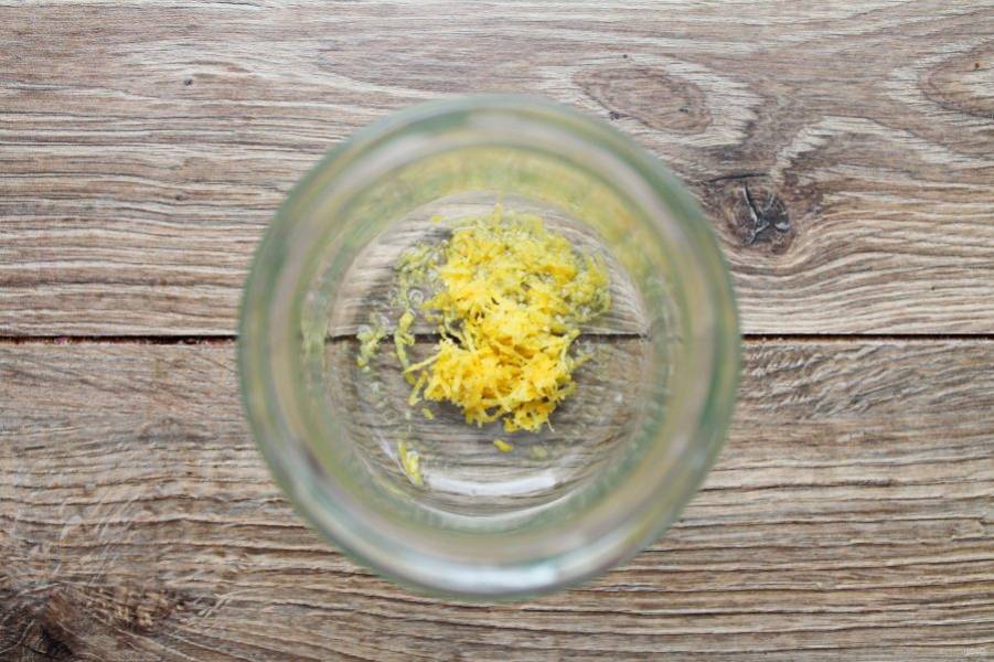 Лимон тщательно вымойте в горячей воде, натрите на терке цедру и выложите в банку.