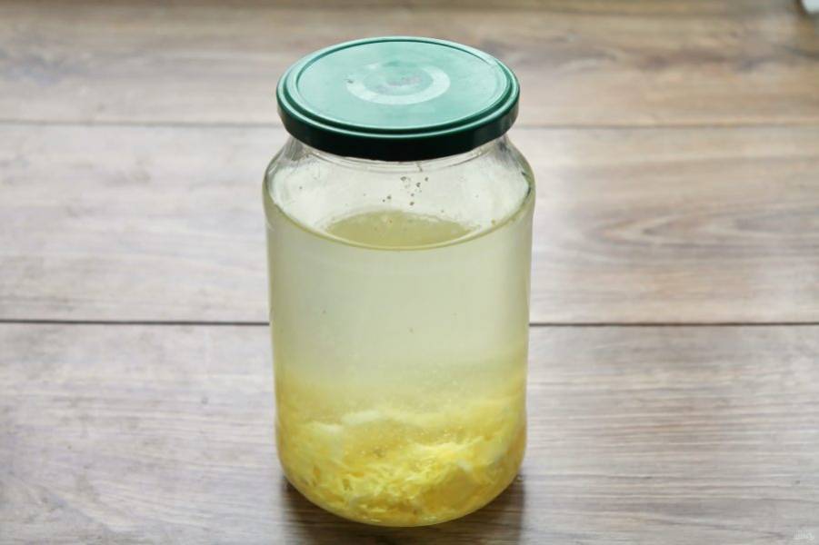 Имбирь очистите от кожицы, натрите на средней терке и добавьте в банку.