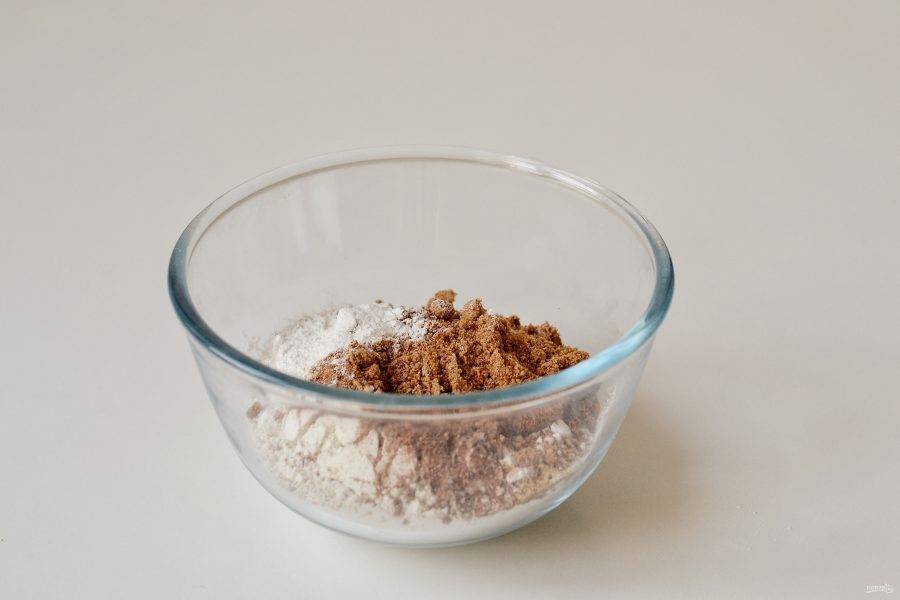 Смешайте муку, сахар и все специи.