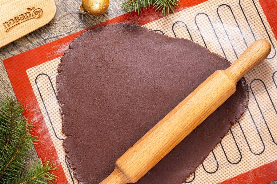 Раскатайте тесто в пласт на слегка присыпанной мукой поверхности до 5-6 мм.
