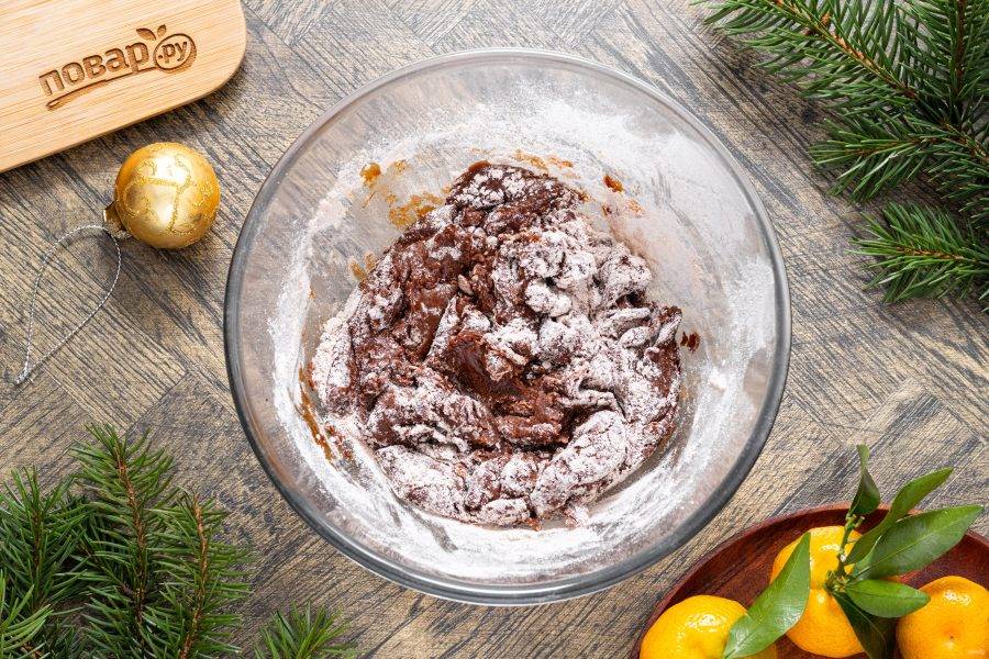 В глубокую миску просейте муку с какао. Все перемешайте, чтобы не осталось комочков.