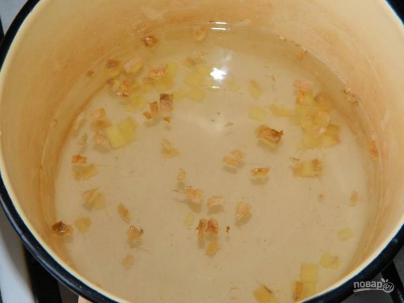 Имбирь мелко нарежьте или натрите на терке. Залейте водой и доведите до кипения.
