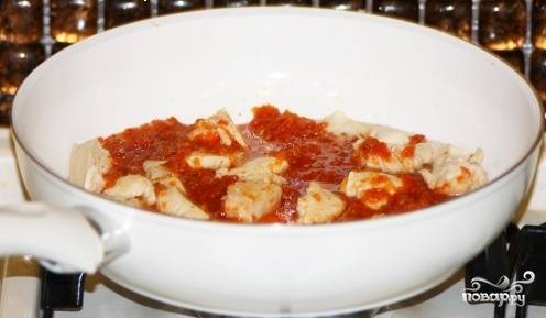 Помидоры моем, ошпариваем кипятком, затем обдаем холодной водой и снимаем кожицу. Затем надо натереть их на крупной терке или измельчить в блендере и добавить к мясу индейки.