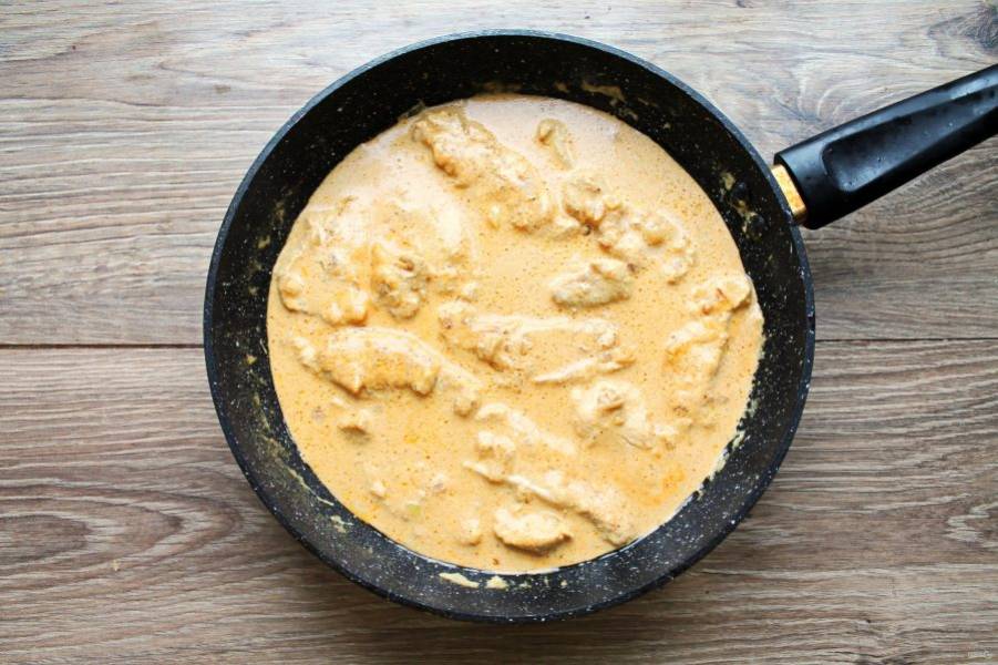 Томите индейку в течение 10-15 минут под крышкой. Снимите сковороду с индейкой в соусе "Карри" и сразу подавайте к столу.