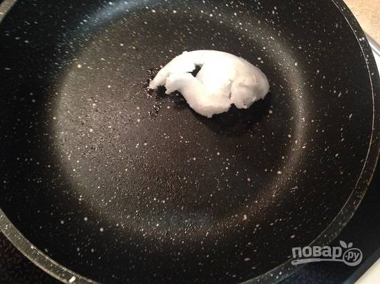 Добавим кокосовую стружку, перемешаем и обжариваем минуты 2. Все время помешиваем!