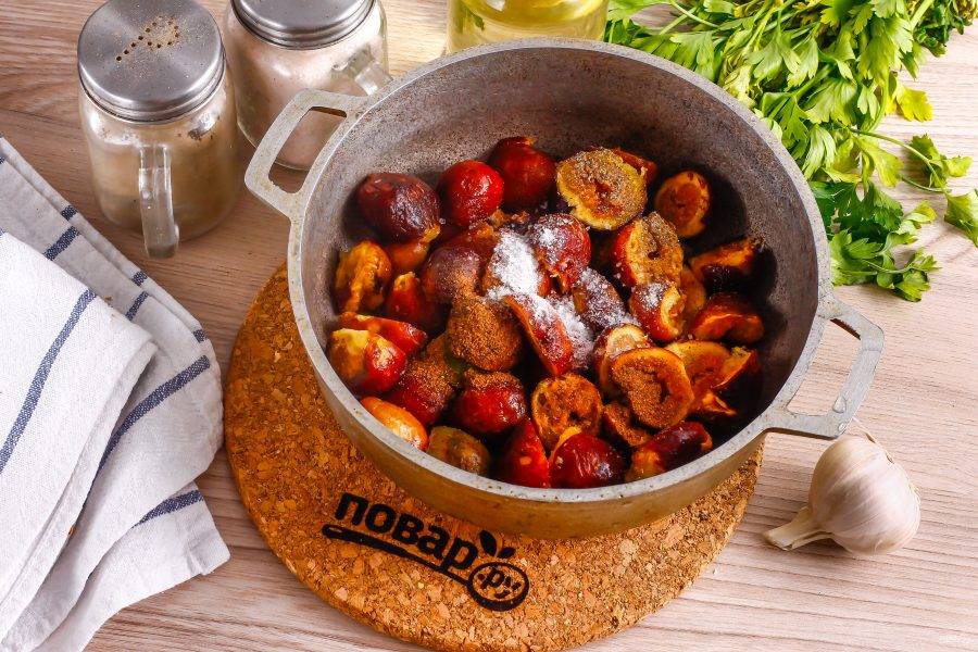 Посолите и поперчите, всыпьте сушеный чеснок. По желанию можно добавить и другие специи или пряности, которые не перебивают вкус основного ингредиента.