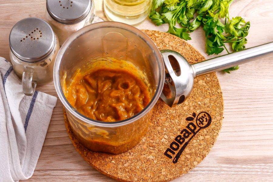 Переместите содержимое казана в глубокую емкость или же отпюрируйте погружным блендером прямо в казане, стараясь не забрызгать все вокруг. Влейте растительное масло и лимонный сок, попробуйте соус на вкус и еще раз отпюрируйте. Если потребуется чуть больше соли, то добавьте ее и перемешайте.