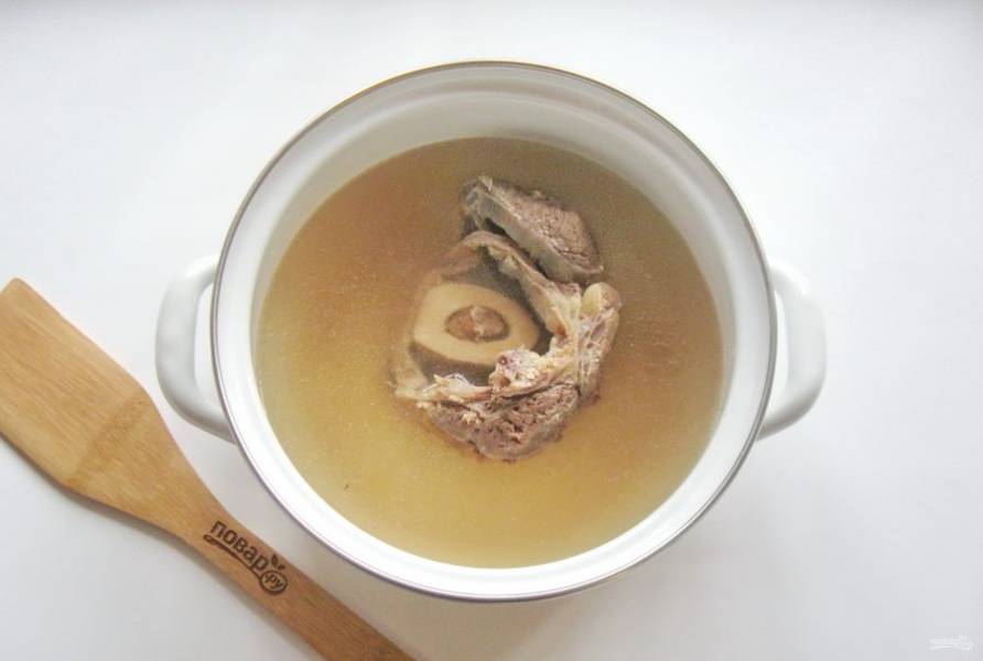 Приготовьте мясо для инкаля. Говядину или баранину помойте и выложите в кастрюлю. Залейте свежей водой, чтобы она покрывала мясо. Доведите до кипения, огонь убавьте до минимума и снимите пену. Варите 2-3 часа до мягкости говядины. Посолите и поперчите бульон с мясом по вкусу.